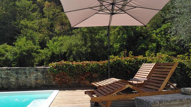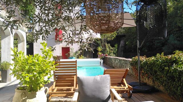 The parental room offers a superb view on the pool and the garden. It is equipped with a double bed. The children's room, which opens onto the calade that leads to the house, has a comfortable bunk bed suitable for adults.