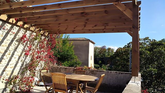 You will be seduced by its large terrace-solarium shaded by its natural wood pergola.