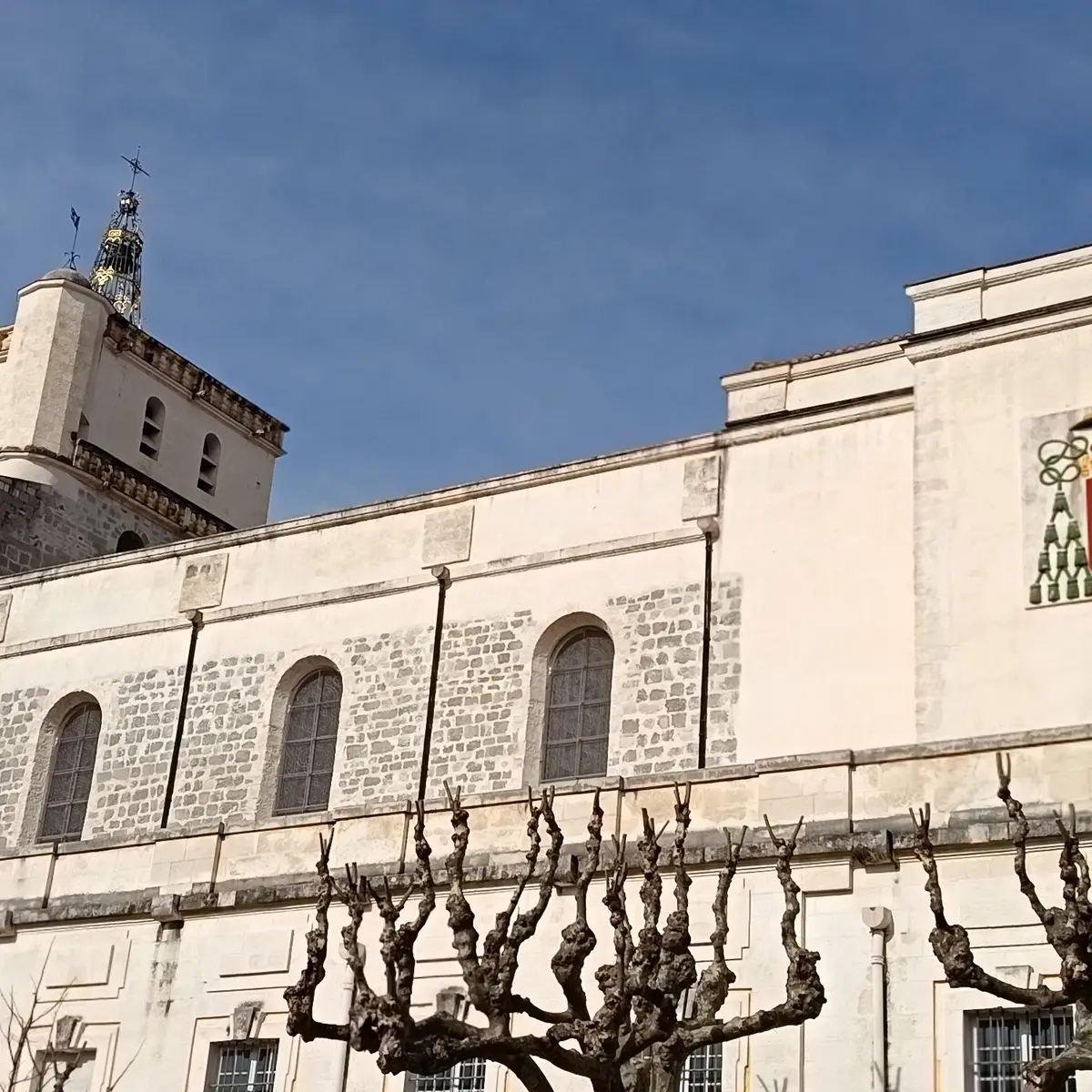 L’église de style néo-classique est devenue cathédrale en 1694 par la volonté du roi Louis XIV. Cet édifice qui a connu des travaux d'agrandissement et de restauration à la fin du XVIIIe siècle. Sous la voûte de la nef, on trouve les blasons des 7 évêques qui ont tous œuvré pour le développement de la cathédrale et de la ville d'Alès.