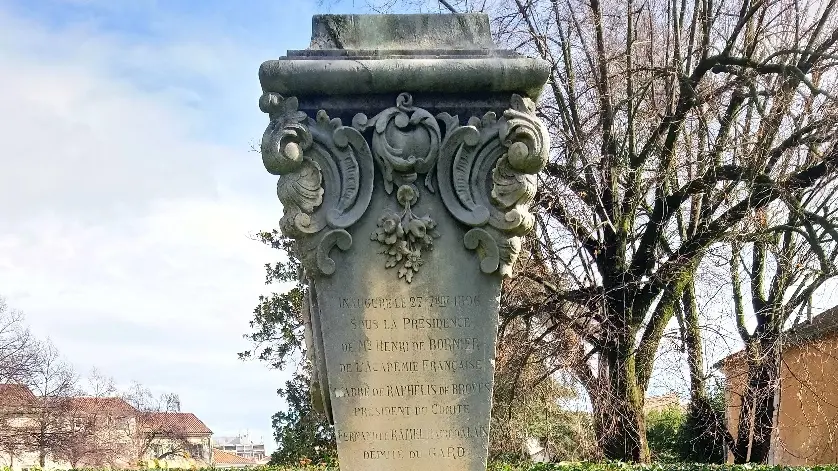 Le monument de l’Abbé de Sauvages a été inauguré le 27 septembre 1896 sous la présidence de Henri de Bornier et installé au Square Sauvage qui se trouvait à l’emplacement de la Rue de la Meunière.