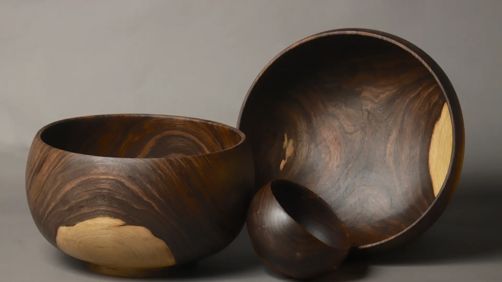 Julien Manikian is een houtdraaier die houten serviesgoed maakt door groen hout te draaien (vers gezaagd hout) waardoor hij kan spelen met de transparantie van het hout en de vervorming.