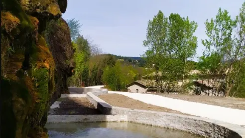 Des bassins maçonnés ont été construits pour récupérer l'eau de la cascade et éviter que la voie soit glissante.