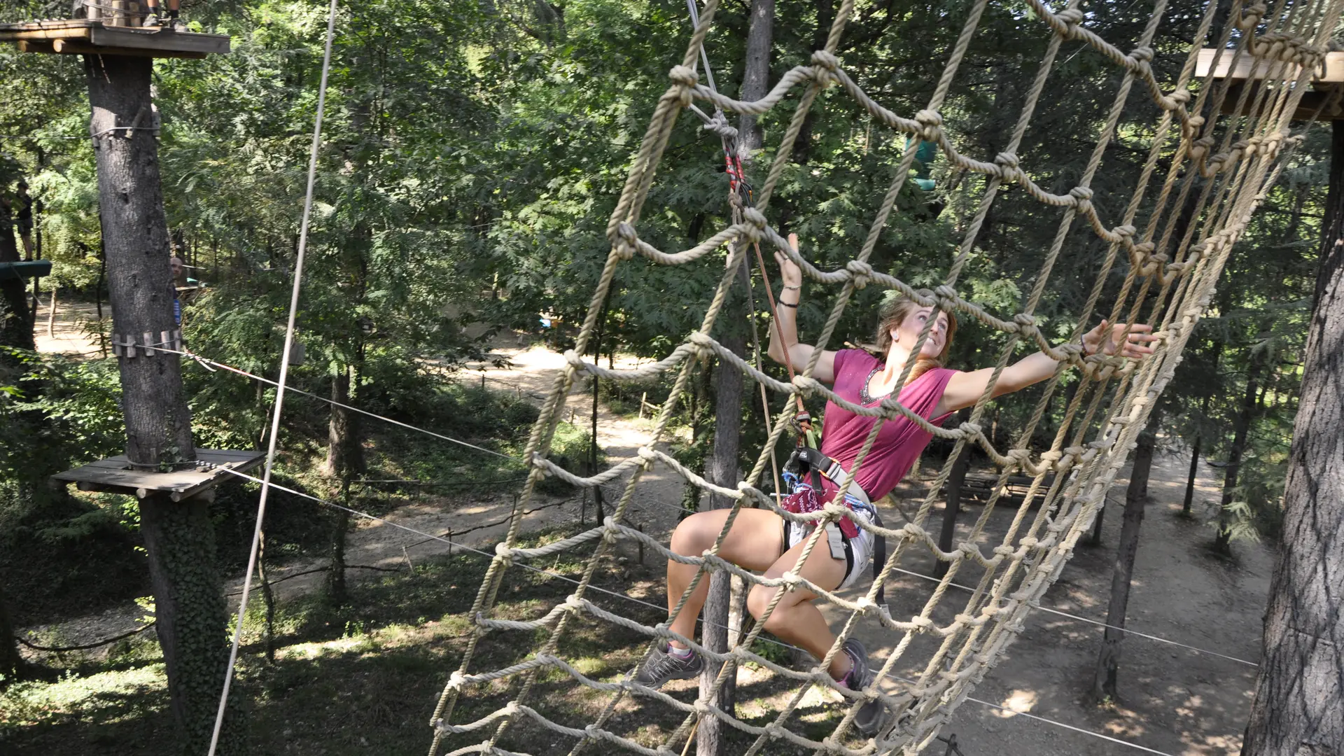Dès le parcours n°5, les parents peuvent même rejoindre leurs enfants dans les arbres ! L’accès au Bois des Jeux est offert pour prolonger le plaisir.