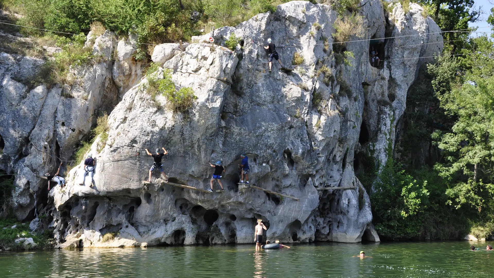Combinez 14 parcours d’accrobranche + un parcours unique à flanc de la falaise et au-dessus de la rivière. La via Ferrata est accessible par une tyrolienne géante de 400 m. Une vue imprenable et une expérience inoubliable ! De 4h d’activité à la journée complète.