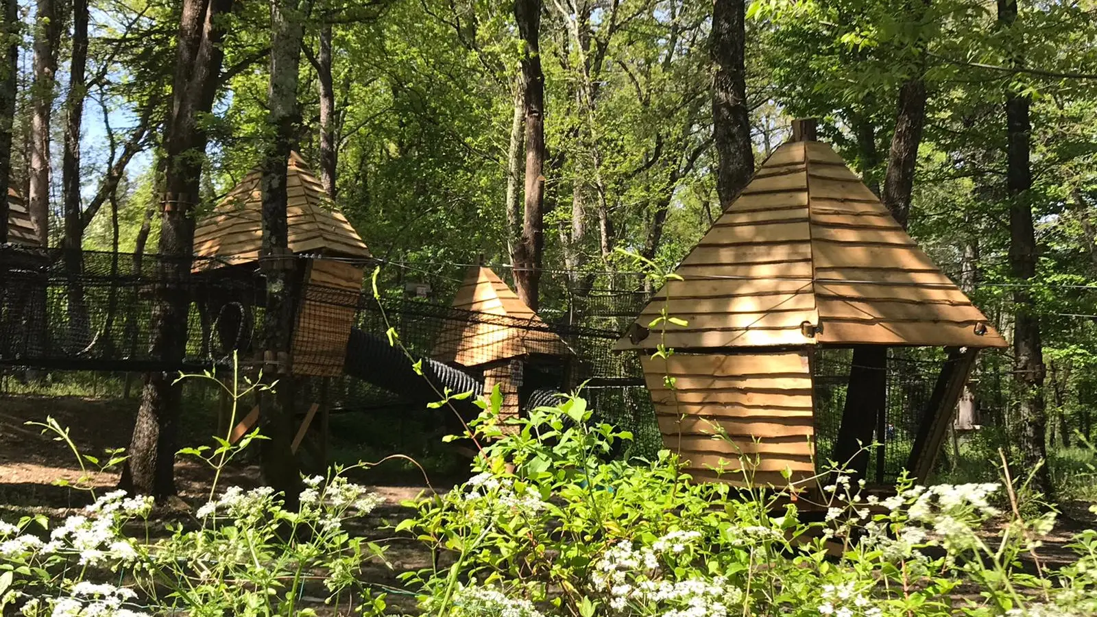 Au programme : filets, trampolines, tyroliennes au sol, marches aériennes, structures gonflables géantes, cabanes et toboggans.