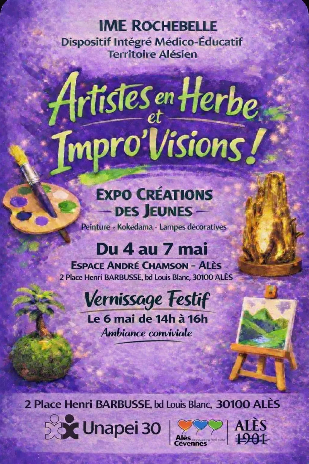 L'IME Rochebelle, dispositif intégré médico-éducatif du territoire alésien, présente une exposition des créations artistiques de ses jeunes. Découvrez des œuvres variées telles que des peintures, des kokedamas et des lampes décoratives. Un vernissage festif est organisé le 6 mai de 14h à 16h dans une ambiance conviviale.