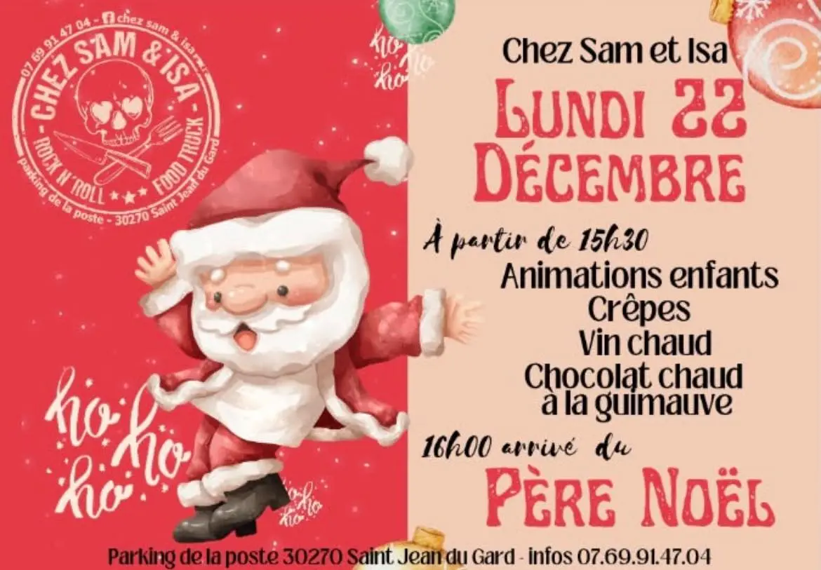 Venez partager un moment chaleureux et festif chez Sam & Isa à l’occasion d’un après-midi spécial Noël ! Dès 15h30, profitez de délicieuses crêpes, de vin chaud, de chocolat chaud à la guimauve et d’animations pour les enfants. À 16h00, le Père Noël fera son arrivée pour émerveiller petits et grands. Une ambiance conviviale et gourmande vous attend sur le parking de la Poste à Saint Jean du Gard. Un rendez-vous familial à ne pas manquer !