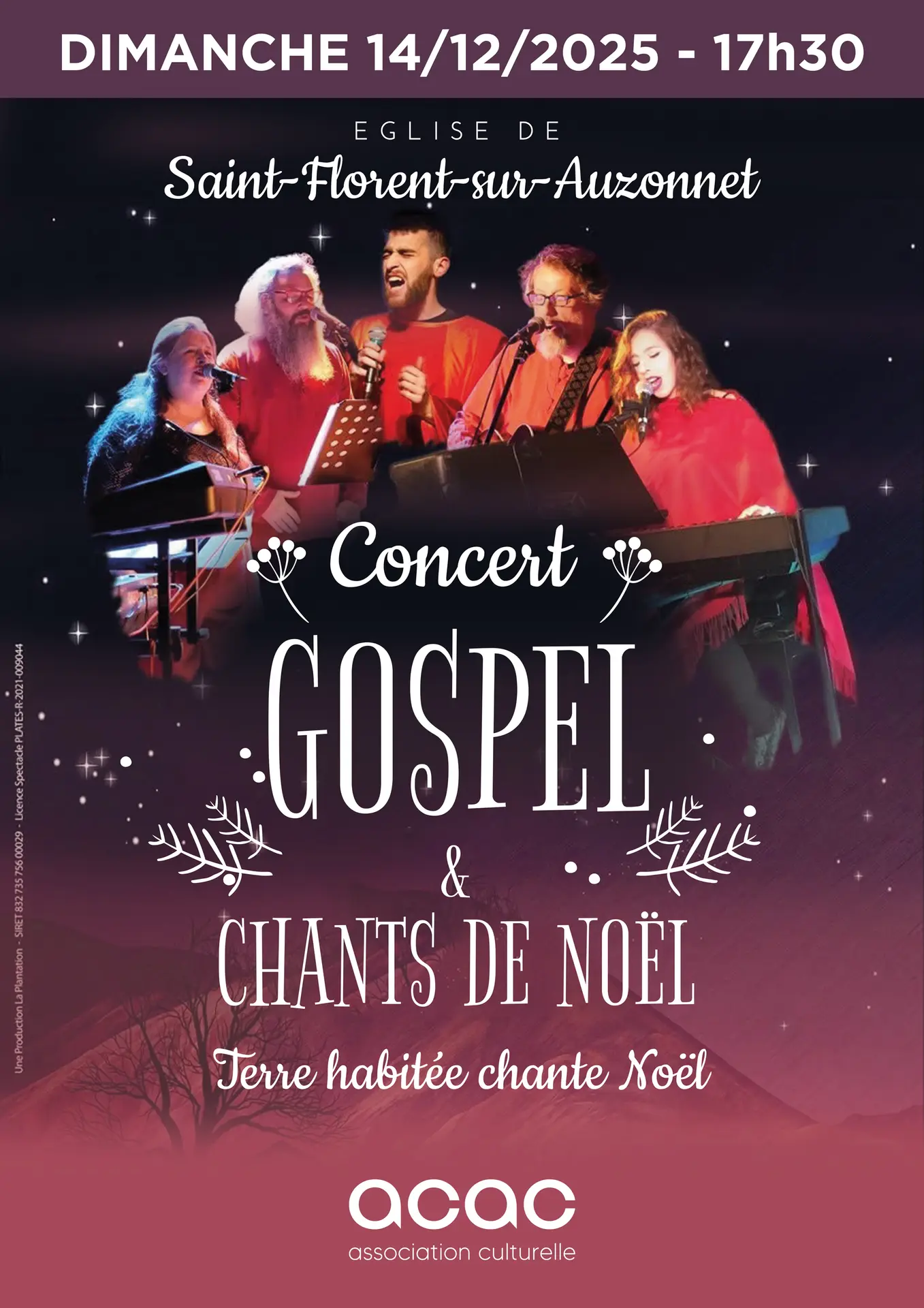 L'église de Saint-Florent résonnera des voix du groupe Terre Habitée, invité par l’ACAC (Association culturelle de Saint-Florent-sur-Auzonnet) pour son concert de fin d’année. Habitué des scènes régionales, l’ensemble se distingue par une approche chaleureuse du gospel, où dialogues musicaux et arrangements acoustiques créent une proximité rare avec le public.