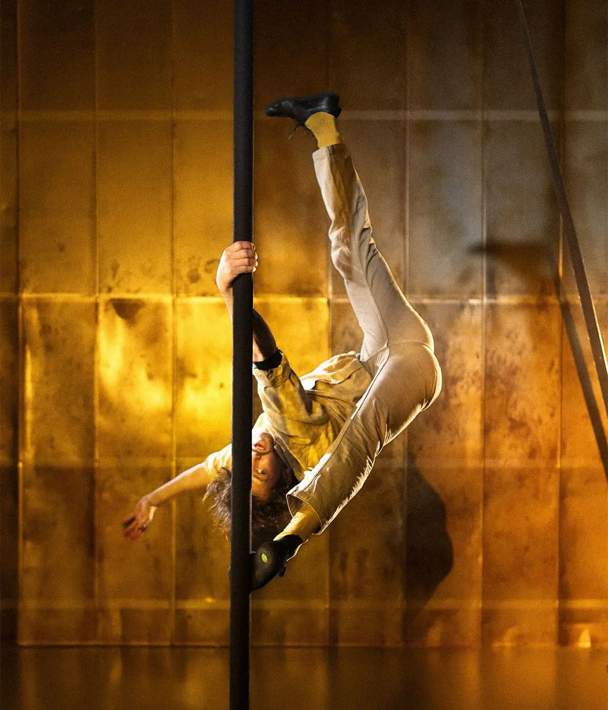 Vladimir Leroy, auteur-interprète formé à l’ESAC TO’LIDO, mêle avec brio mât chinois, cascades à vélo et comique de l’absurde. Une première création à découvrir absolument !