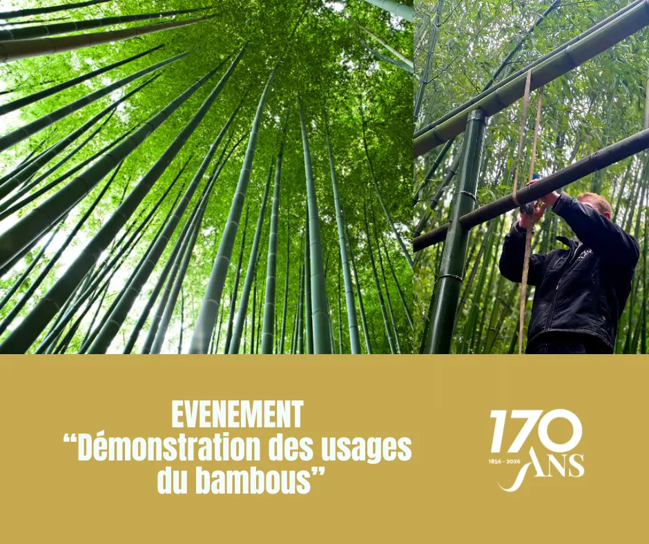 À travers cette démonstration, nos équipes de jardiniers vous invitent à découvrir concrètement comment le bambou est utilisé : structures, aménagements, tressages, supports…