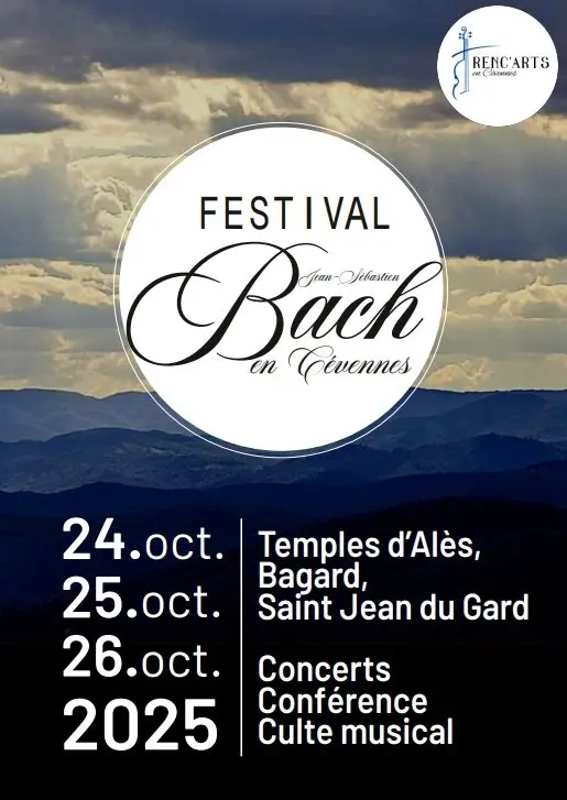 3 jours - 3 lieux. Le festival Bach en Cévennes se déroulera donc du 24 au 26 octobre 2025 dans les temples d’Alès, Bagard et Saint Jean du Gard. Concerts, conférence et culte musical jalonneront ce temps fort avec des artistes professionnels, pour beaucoup de renommée internationale, et des personnalités issues des milieux médiatiques, universitaires…