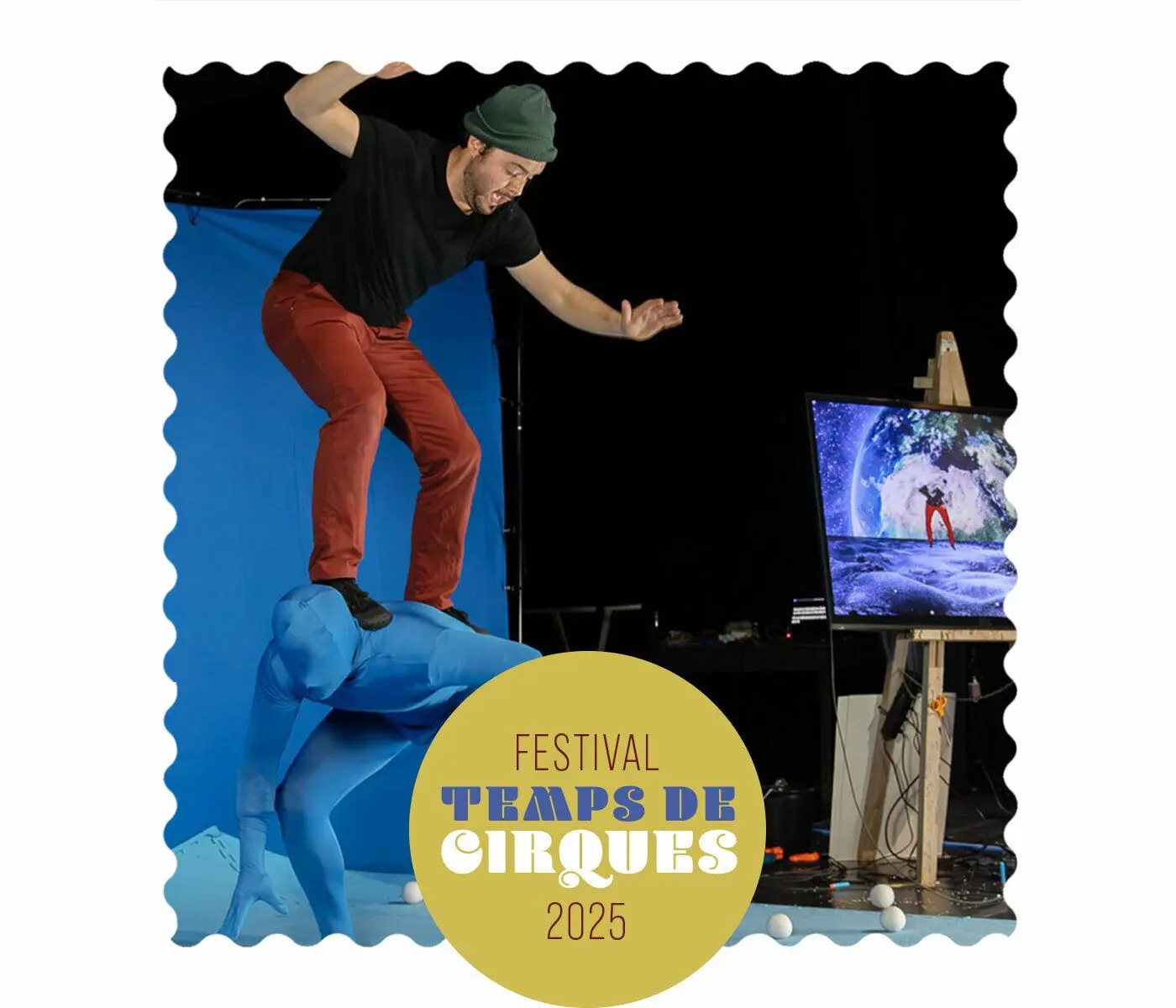 « Nous, on n’a rien vu venir » est une performance spectacle participative un brin « folichonne » voir même complètement déjantée par moment, où deux interprètes circassiens se livrent à un match grotesque et doux autour d’un agrès de cirque qui n’en est pas un : un téléviseur.