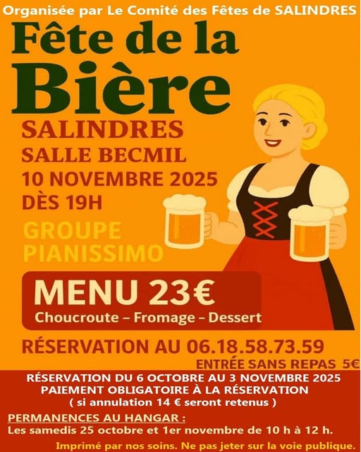 réservation avant le 05 novembre au 06 60 94 53 80.