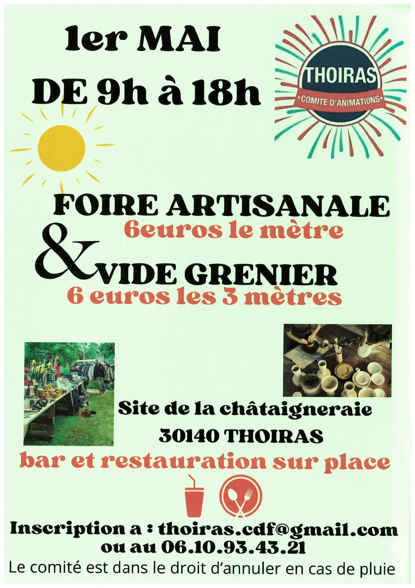 Foire artisanale et vide grenier à Thoiras, avec bar et restauration sur place.