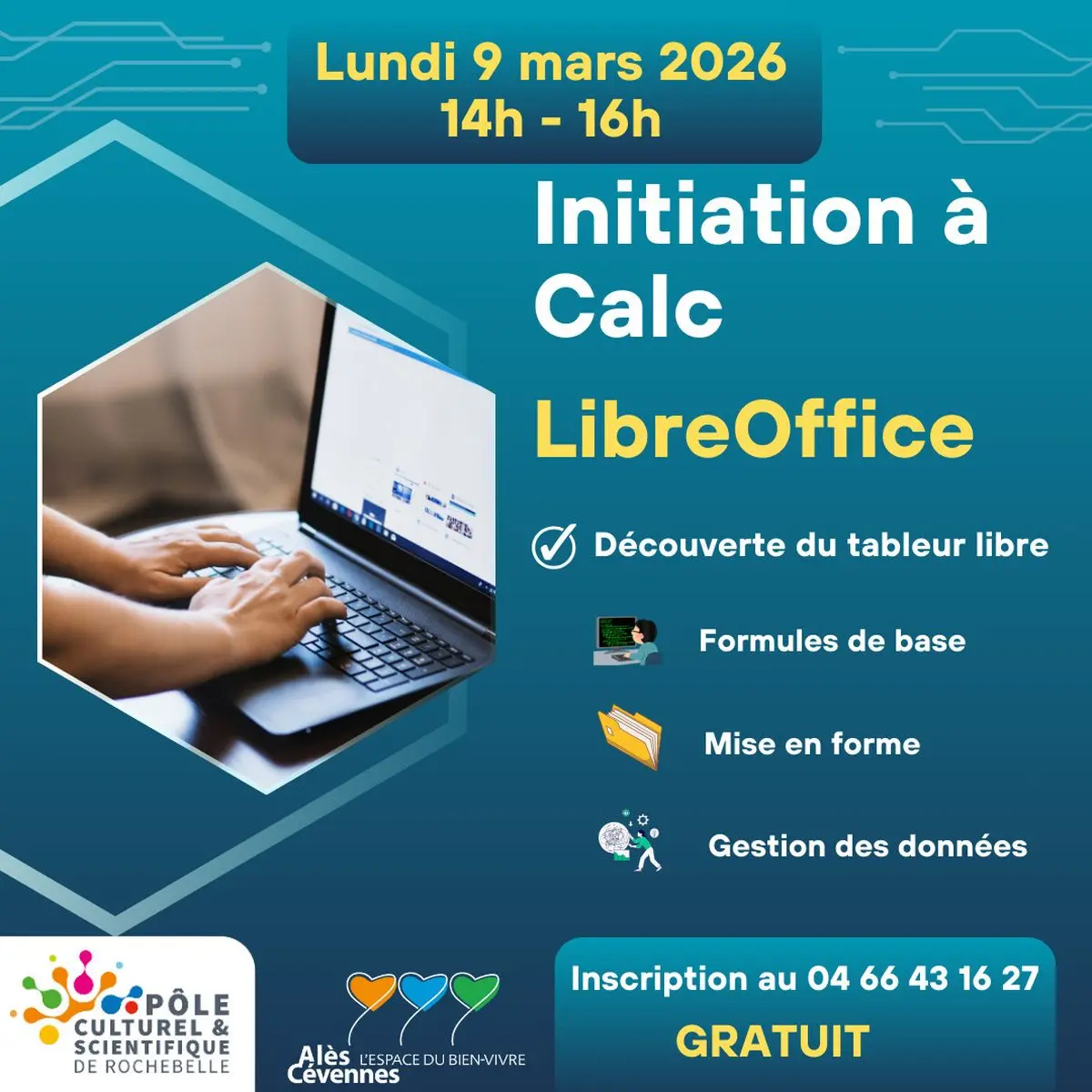 L'espace Public Numérique du Pôle culturel et scientifique de Rochebelle, vous propose une initiation Gratuite à Calc (LibreOffice).