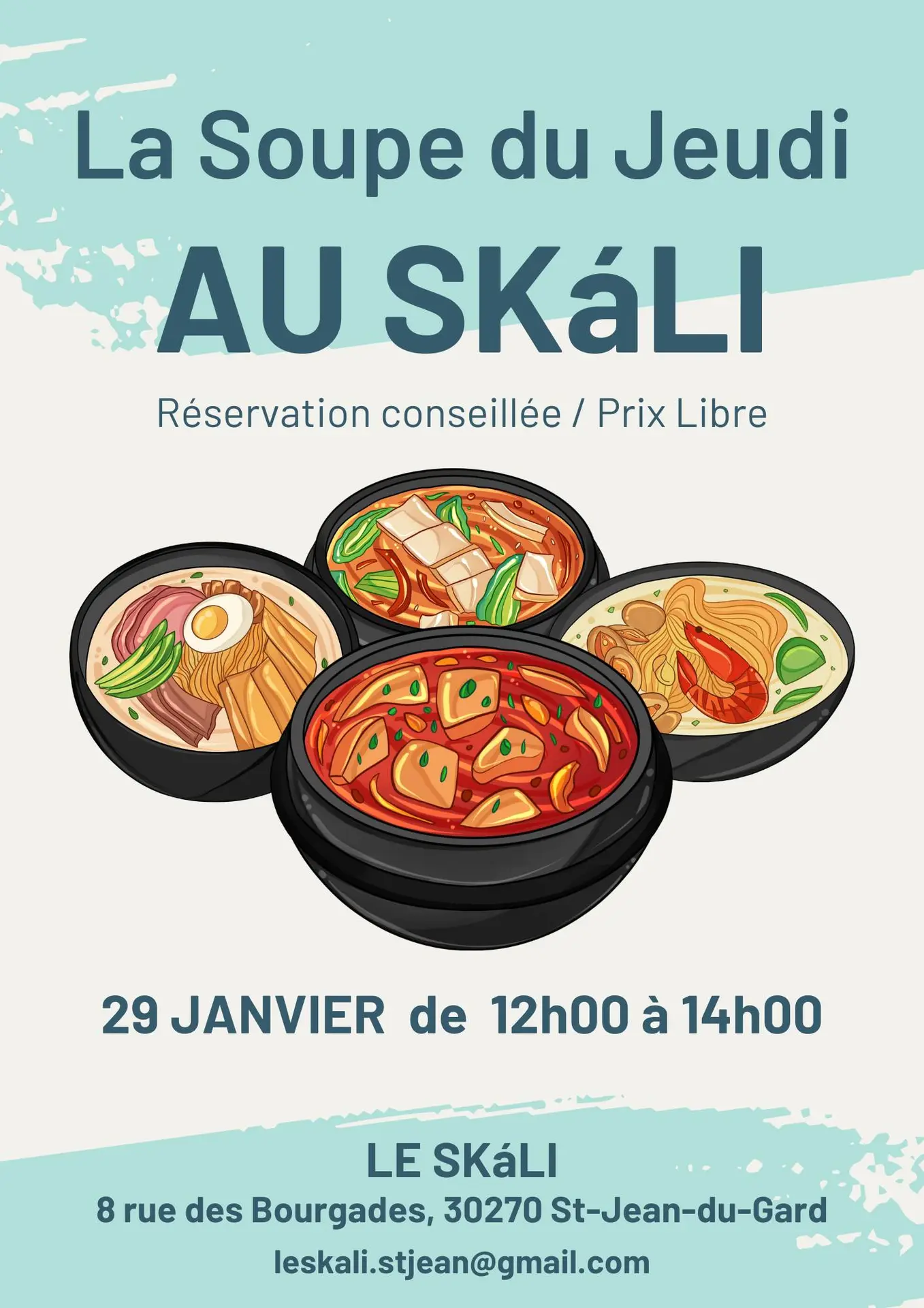 La soupe du jeudi revient en 2026 ! La formule comprend toujours soupe et pain à volonté + dessert, le tout maison et bio, à prix libre et... c'est vraiment succulent !