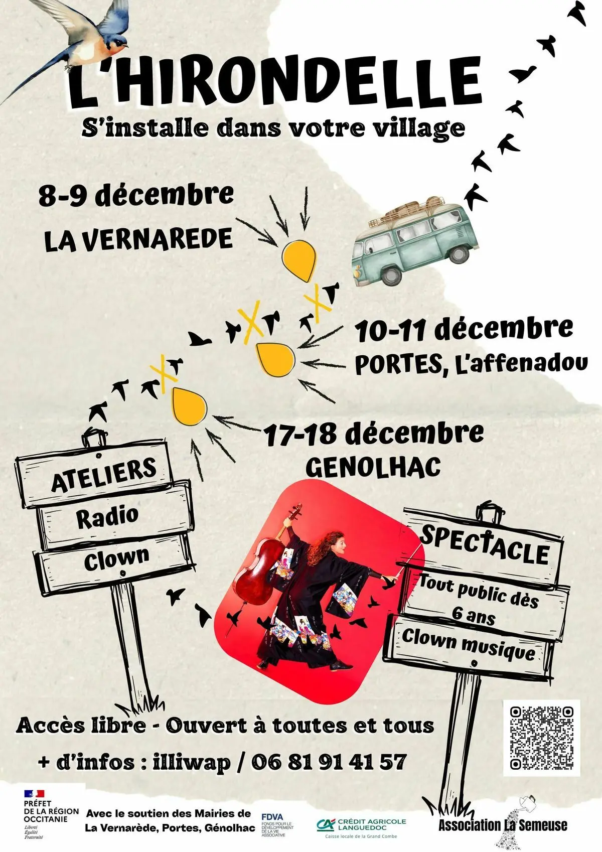 En itinérance dans les Hautes Vallées Cévenoles, l'Hirondelle se pose et vous accueille pendant 2 jours : espace de discussion, ateliers artistiques, spectacle, salon de thé....