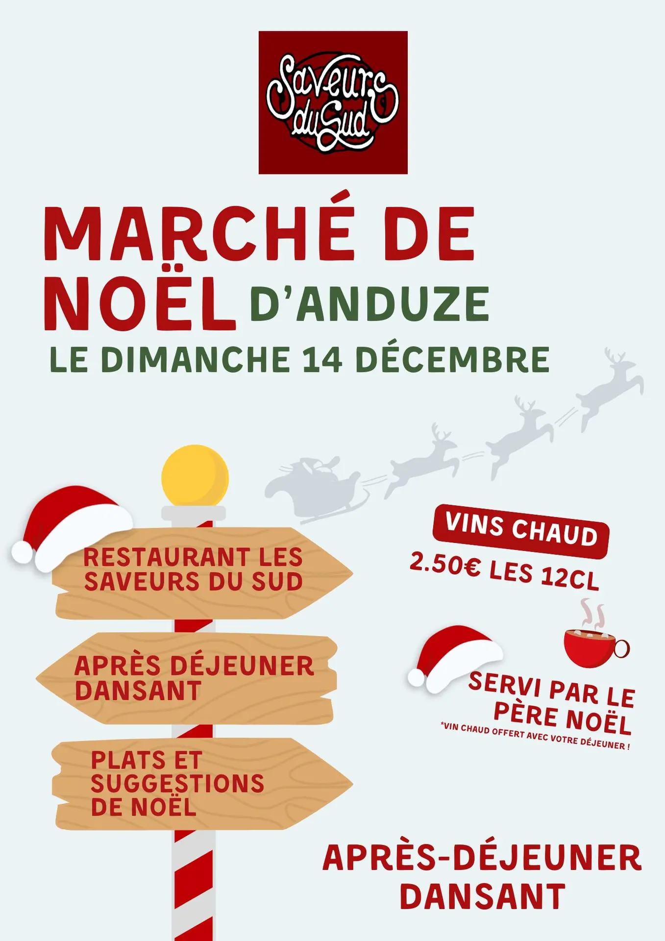 A l'occasion du marché de Noël Marché d’Anduze, le Père Noël fait escale aux Saveurs du Sud ! Il servira en personne du vin chaud maison, juste devant le restaurant.
