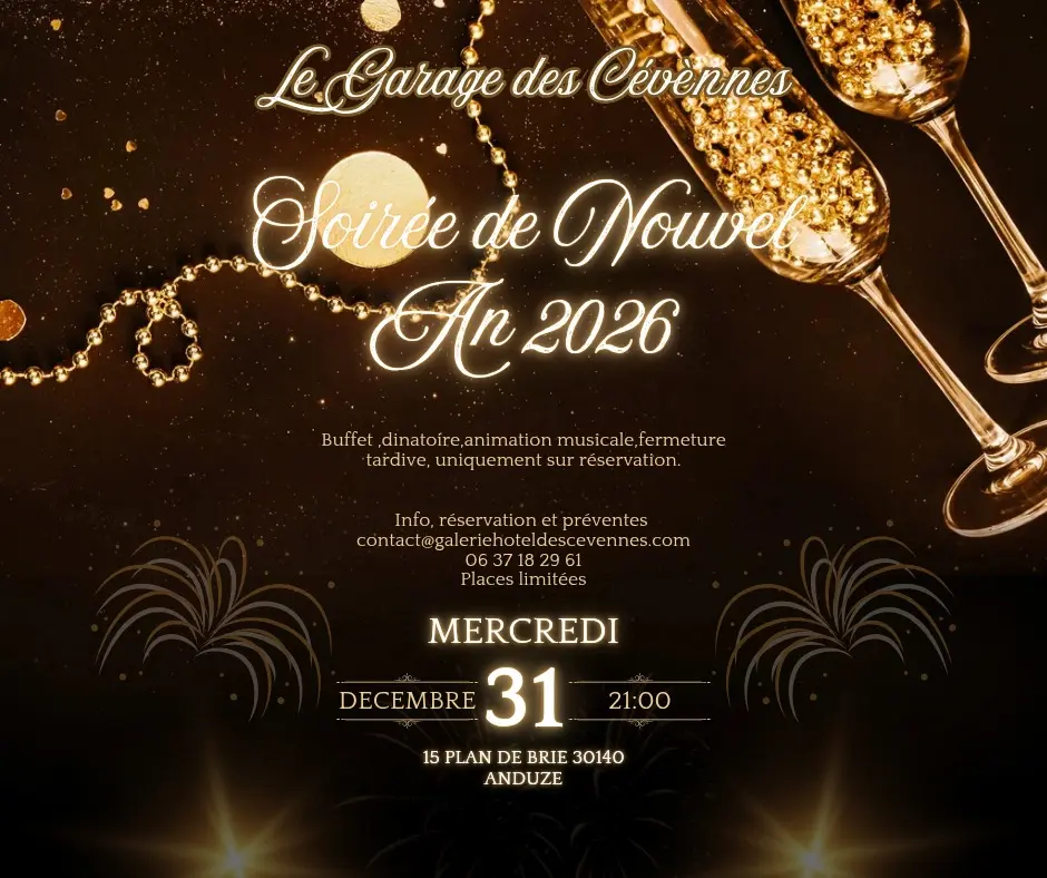 Le Garage des Cévennes organise une soirée de Nouvel An 2026 !