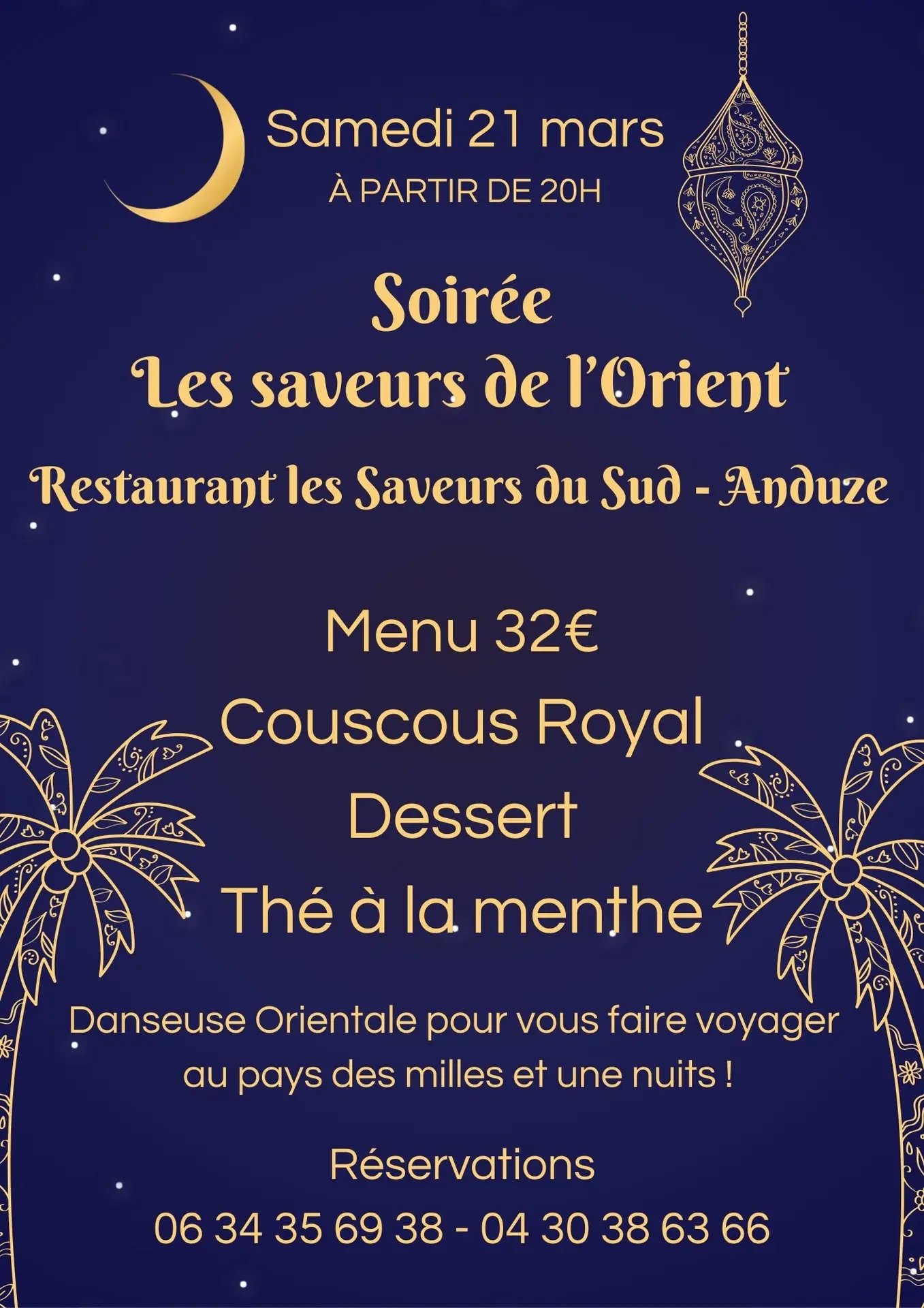 Soirée exceptionnelle aux Saveurs de l’Orient.