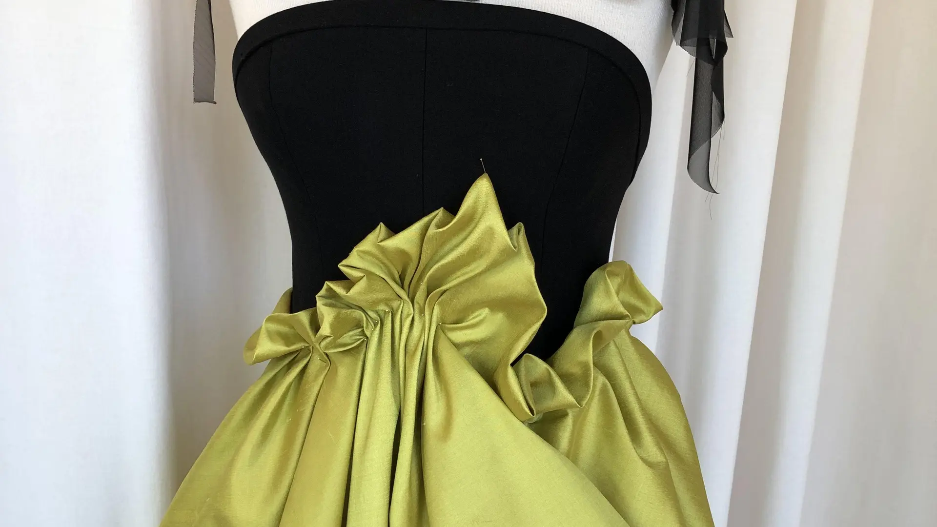 Le tissu est posé directement sur le corps, puis prend forme, en respectant à la fois les qualités propres de la matière et les lignes du corps. Annick travaille tel un sculpteur, façonnant peu à peu sa création jusqu’à ce qu’elle se transforme en un vêtement unique et sublime.