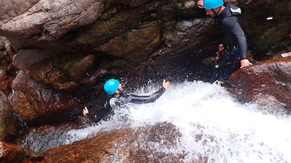 Le canyoning ? Vous progressez à pied dans une rivière, équipé d'une combinaison néoprène, d'un baudrier et d'un casque sous les conseils avisés de votre moniteur diplômé d'état.