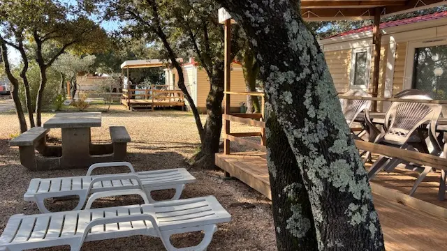 Camping au cœur des Cevennes, de petite taille, saura vous accueillir dans l'un de ses 13 mobil homes ou dans un de ses chalets. Des emplacements nus sont également a disposition. Le camping demande un peu de dextérité au volant... mais une vue comme la nôtre se mérite ! Si nous attirons votre curiosité n'hésitez pas, nous sommes là et prendrons un réel plaisir a vous accompagner lors de votre séjour. Entouré et ombragé par nos beaux chênes des Cevennes, le chant des cigales, la lavande, le thym, pas de doute vous êtes ici sûrs d'avoir un joli ciel bleu et de la chaleur. Chaque locatif est équipés de terrasse couverte pour profiter un maximum des extérieurs et de la nature. La piscine avec sa vue panoramique saura vous charmer. Le petit snack, avec ses frites maison fraîchement épluchées sous vos yeux, vous mettront l'eau a la bouche ; ) Vous cherchez un camping très familial ou l'on respecte votre repos et votre calme ? Nous nous ferons une joie de vous accueillir !