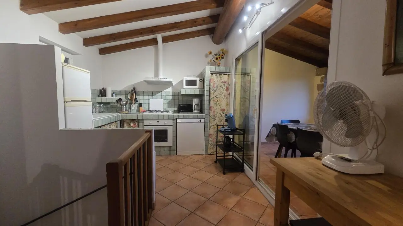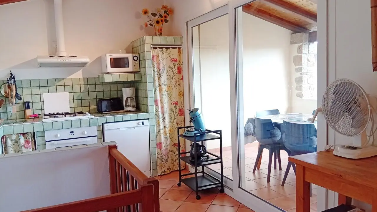 Depuis la terrasse couverte vous pourrez profiter de la vue sur la vallée de Saint Jean du Gard , dans le petit jardin vous relaxer en toute intimité , ou bien côté arrivée préparer des grillades .