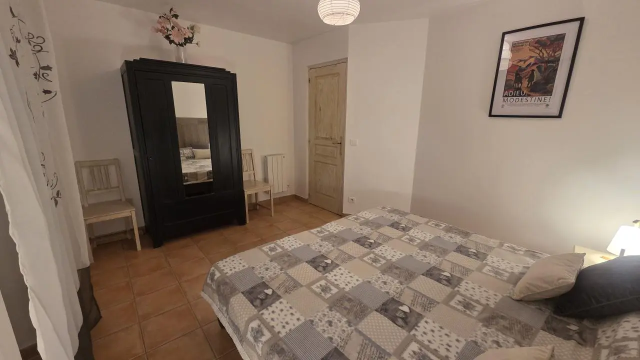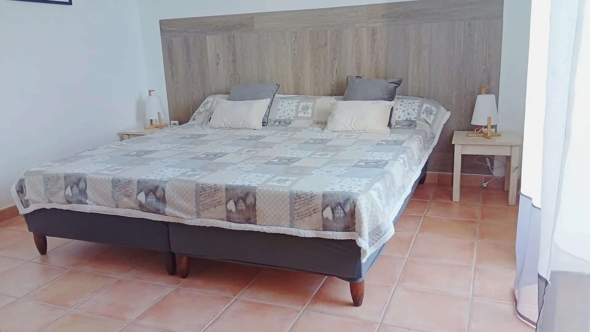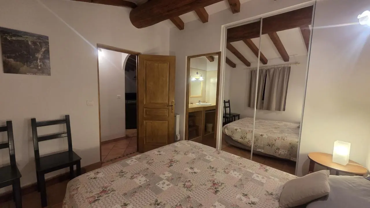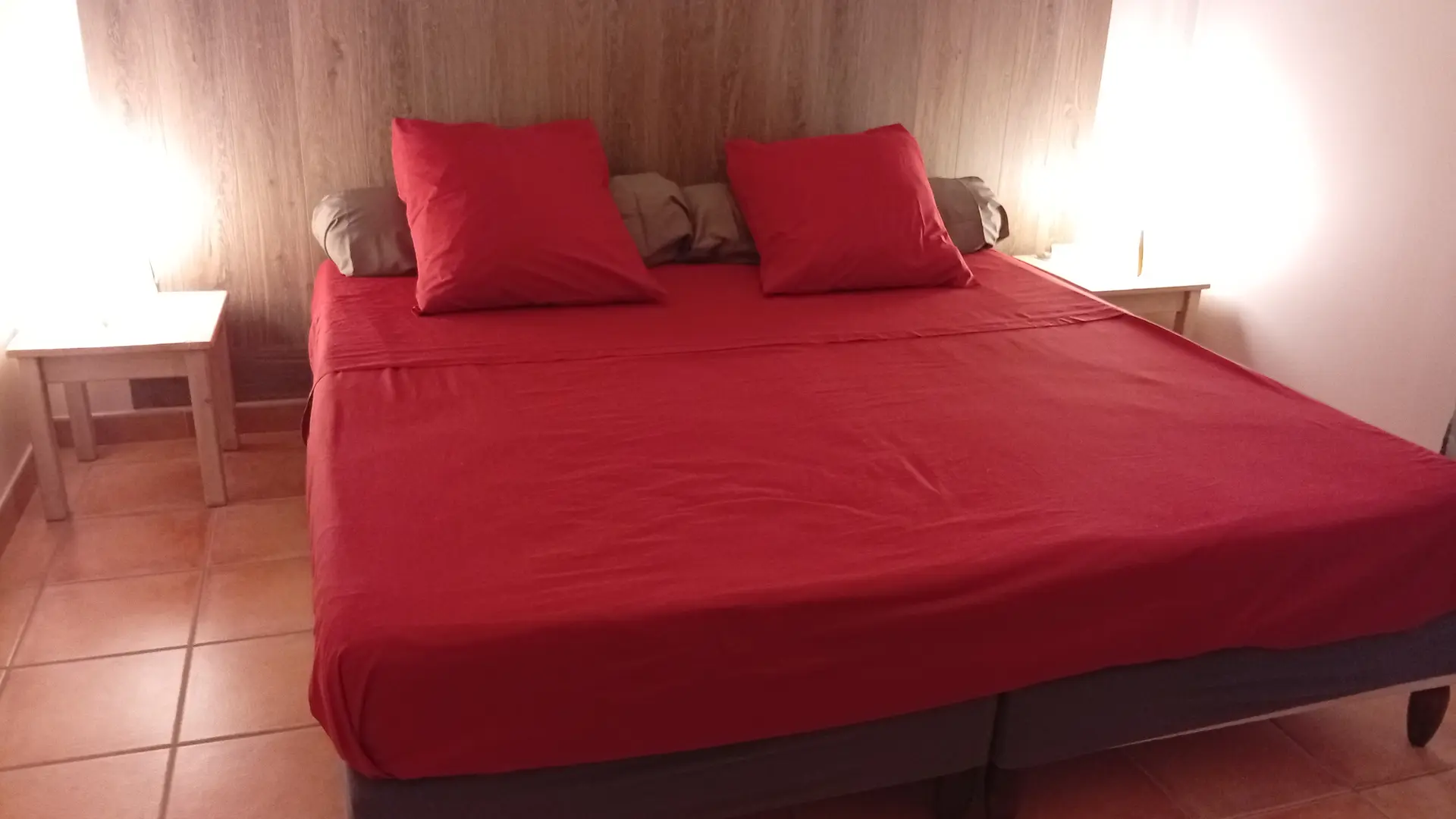 Le gîte est idéal pour vos vacances en famille ou entre amis : une chambre à l'étage avec son lit en 160 et sa salle de bain privative et deux chambres au rez de chaussée en accès direct sur le petit jardin clos avec quatre lits en 90 convertibles en deux lits en 180 plus une autre salle de bain et toilettes.