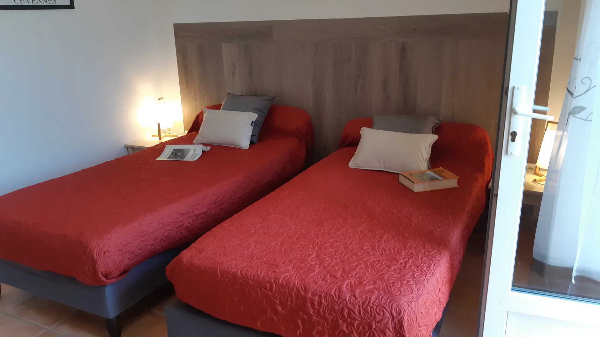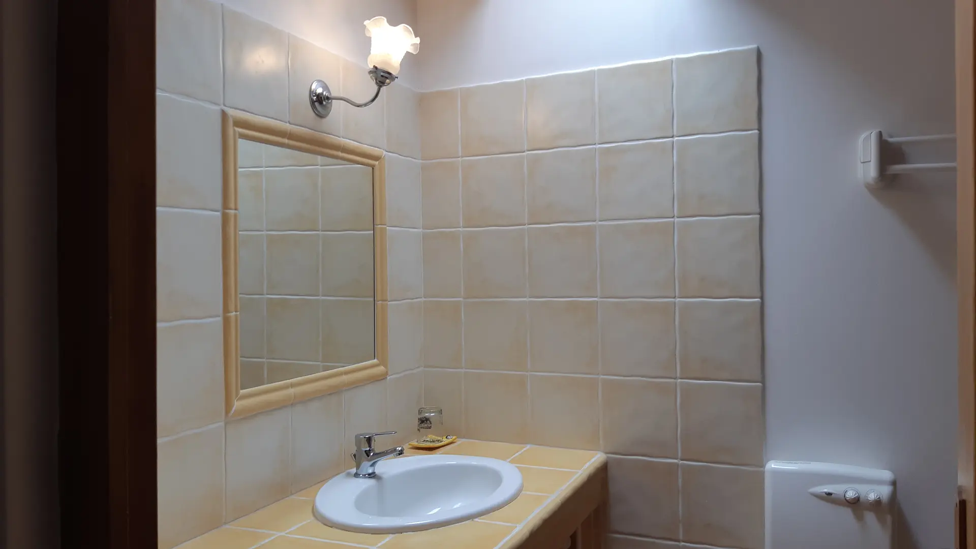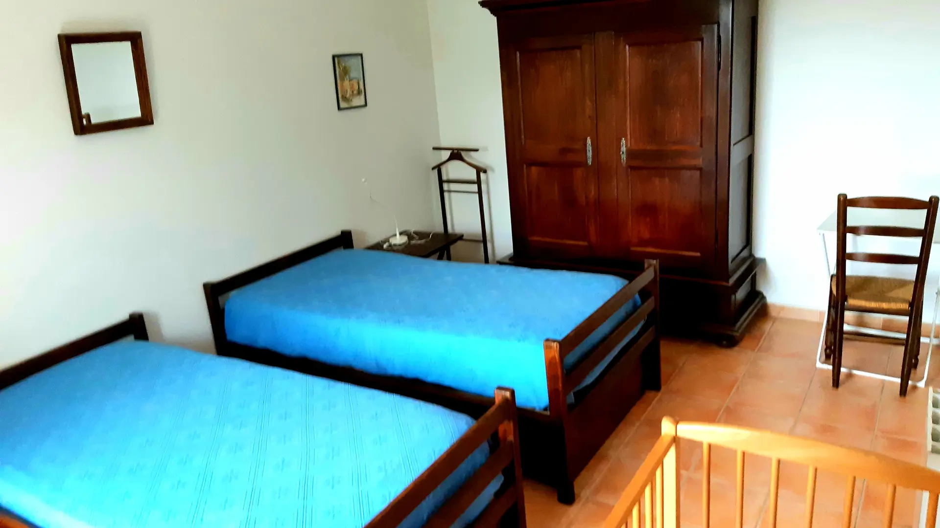 Le gîte est idéal pour vos vacances en famille ou entre amis : une chambre à l'étage avec son lit en 160 et sa salle de bain privative et deux chambres au rez de chaussée en accès direct sur le petit jardin clos avec quatre lits en 90 convertibles en deux lits en 180 plus une autre salle de bain et toilettes.