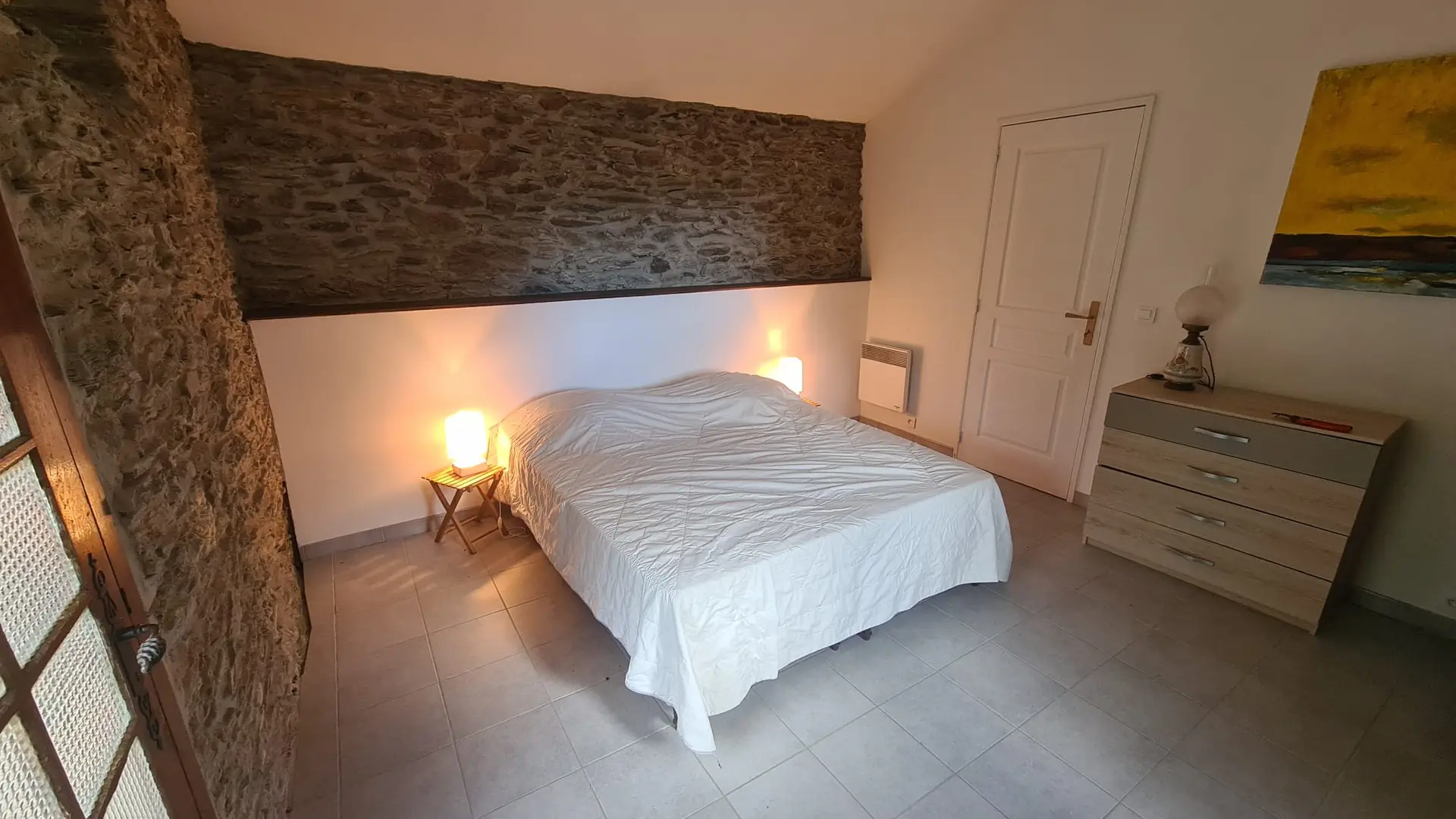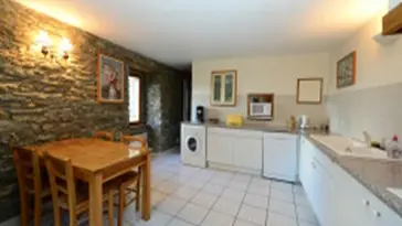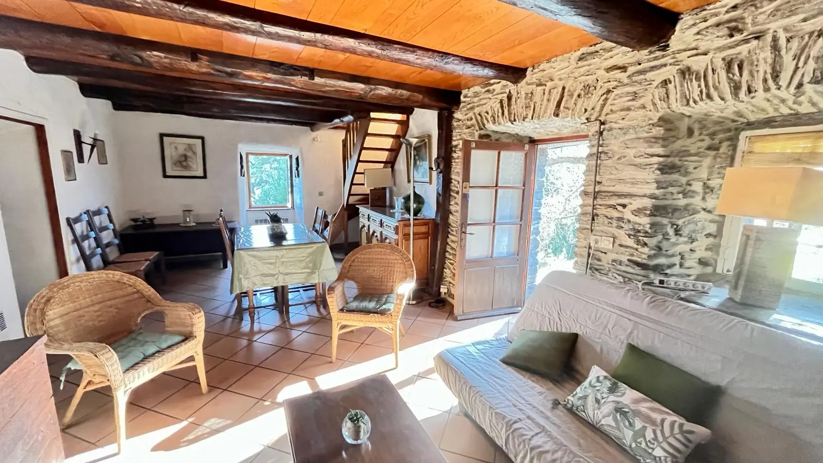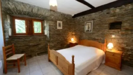 Au rez-de-chaussée, vous découvrirez un salon doté d'une cheminée chaleureuse, une salle à manger conviviale, et une cuisine entièrement équipée. L'atout majeur de cette habitation réside dans la véranda, offrant une vue panoramique sur la vallée, un endroit parfait pour se détendre et profiter pleinement du paysage. La Bâtisse peut accueillir 4 voyageurs.