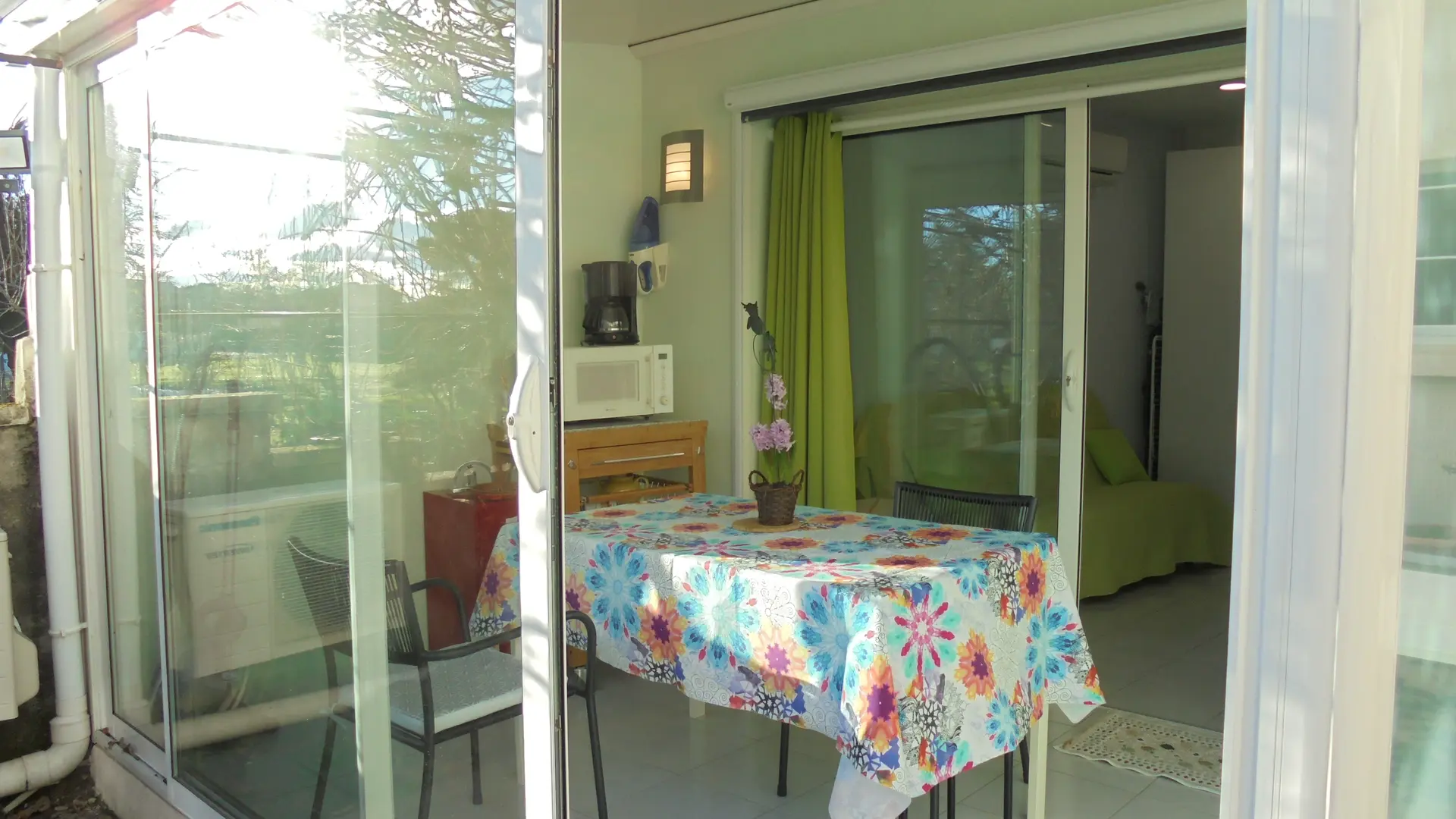 Il possède une véranda où vous pourrez prendre les repas et il est de plain pied.