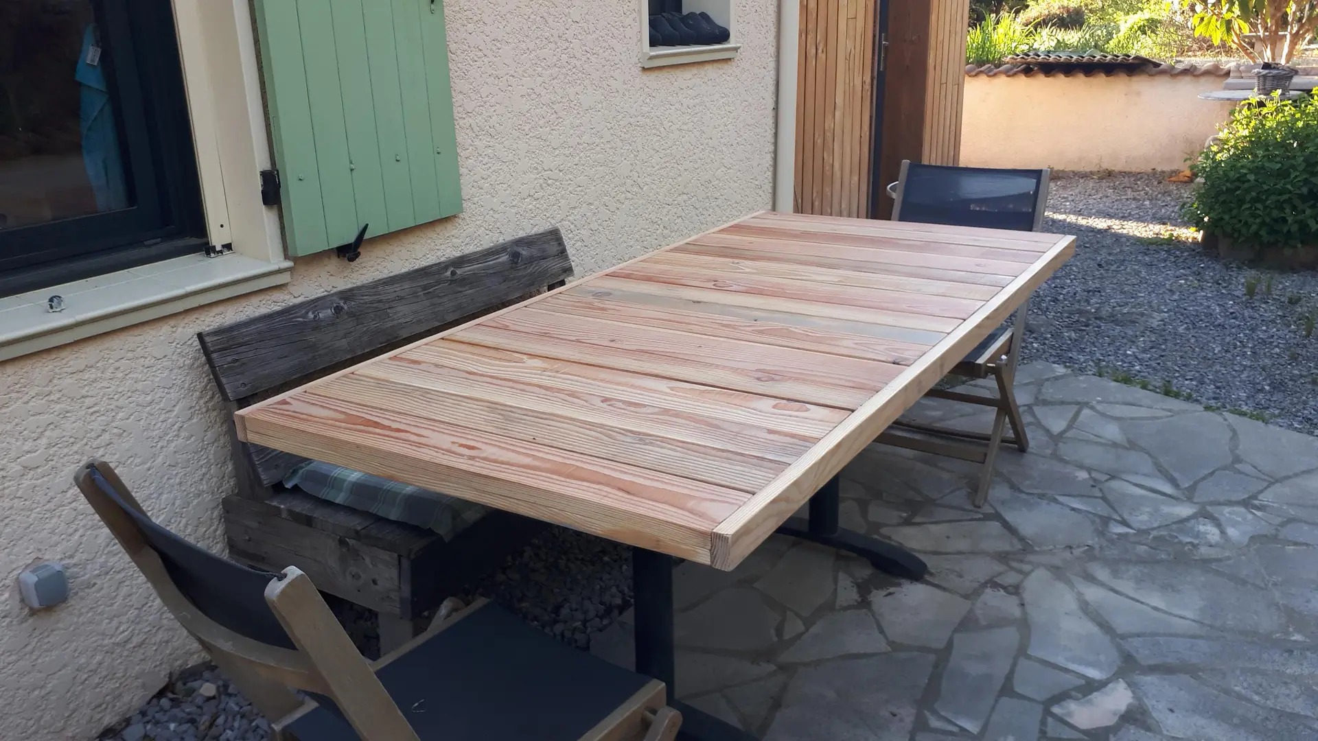 Fabrication artisanale de mobilier de jardin en bois massif. Toutes les créations sont fabriquées dans son atelier à Anduze avec du bois de la région (frêne thermo-chauffé et pin douglas).