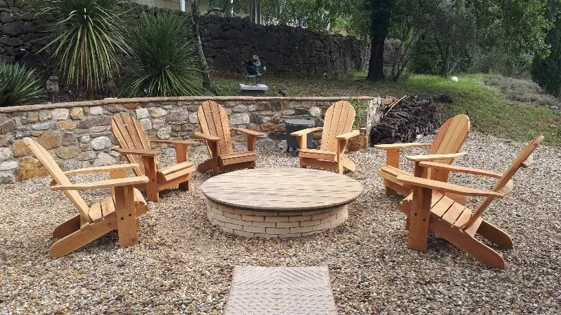 Les fauteuils, tables et bancs peuvent rester dehors toute l'année pour en profiter pleinement!