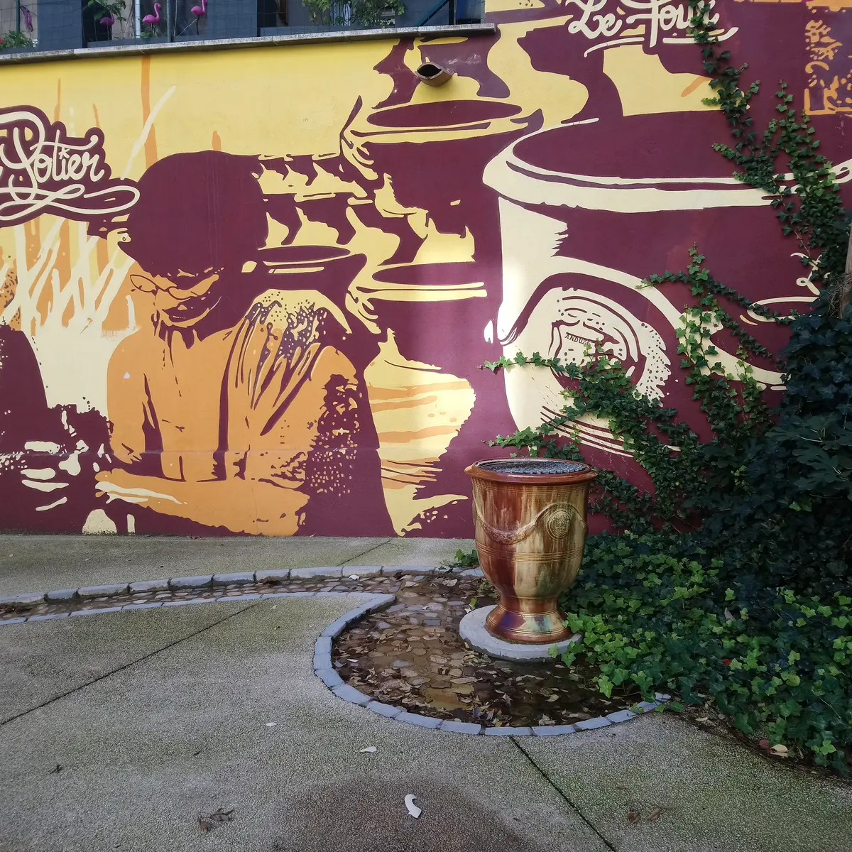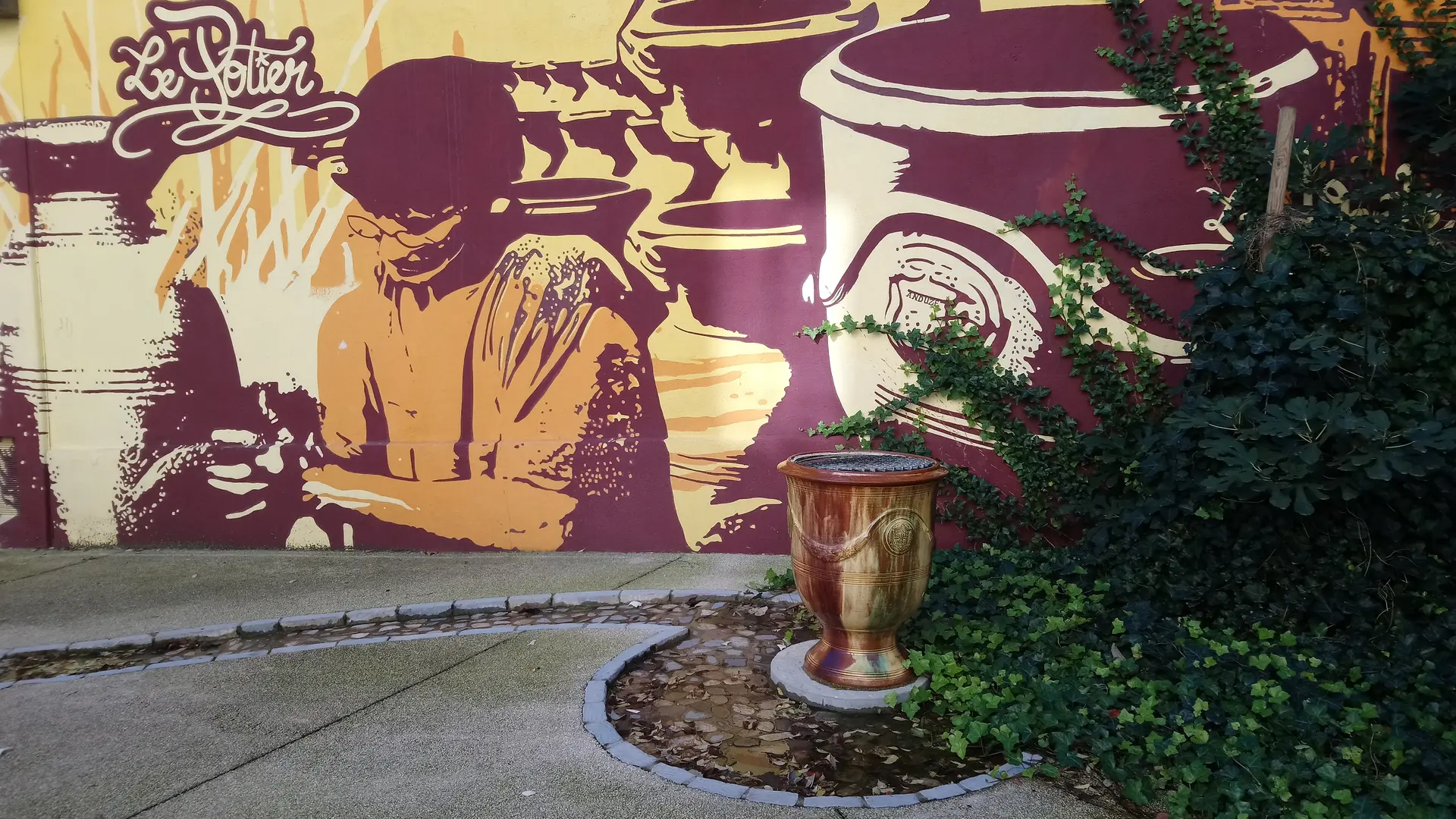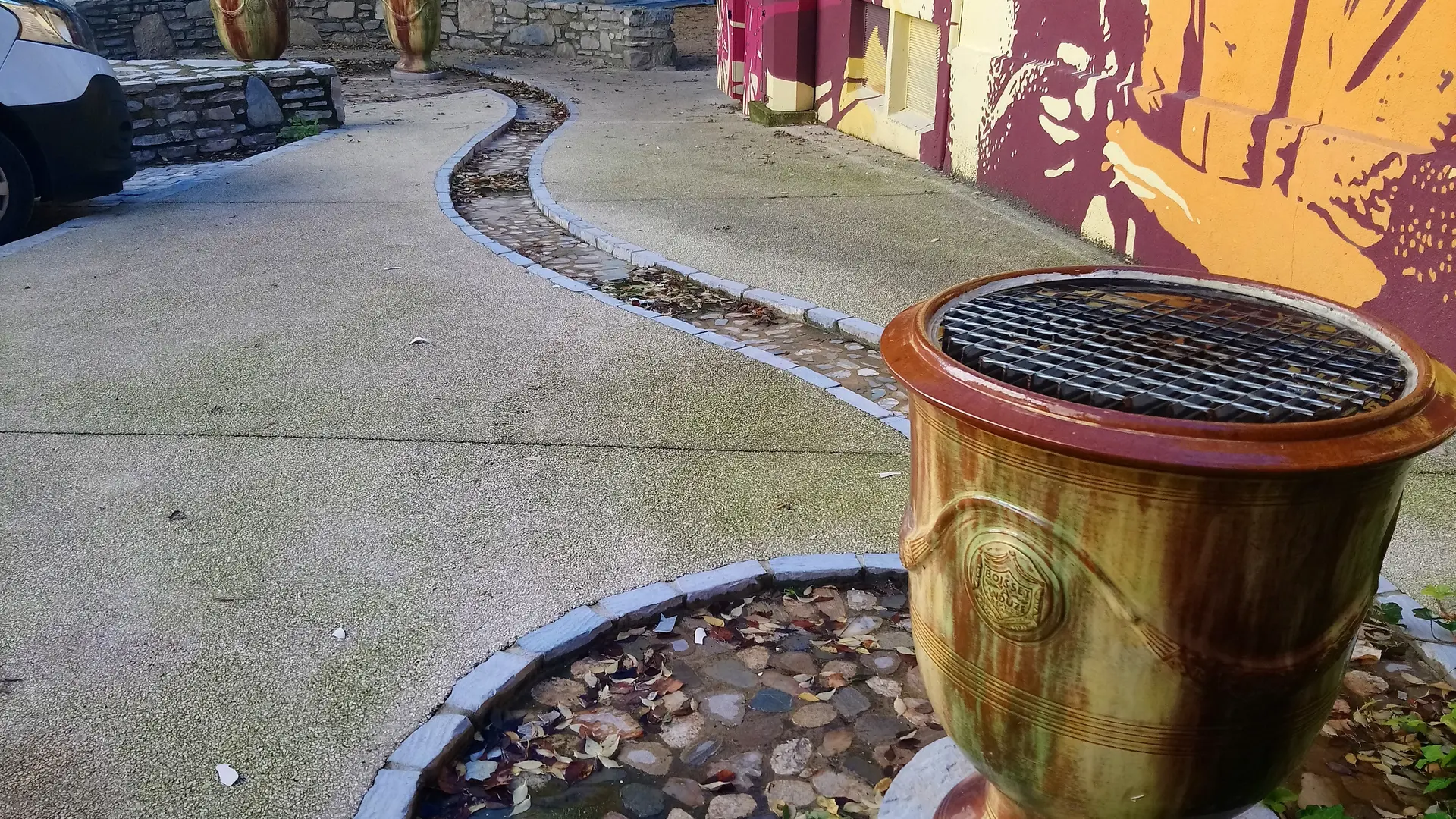 Une fontaine a donc été créée ainsi qu’une fresque réalisée par Nicole Le Fur, sur le travail de la poterie.
