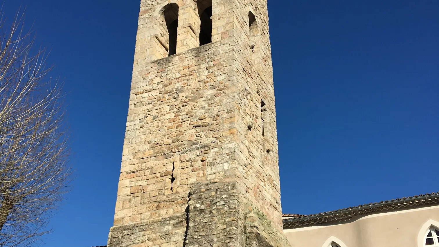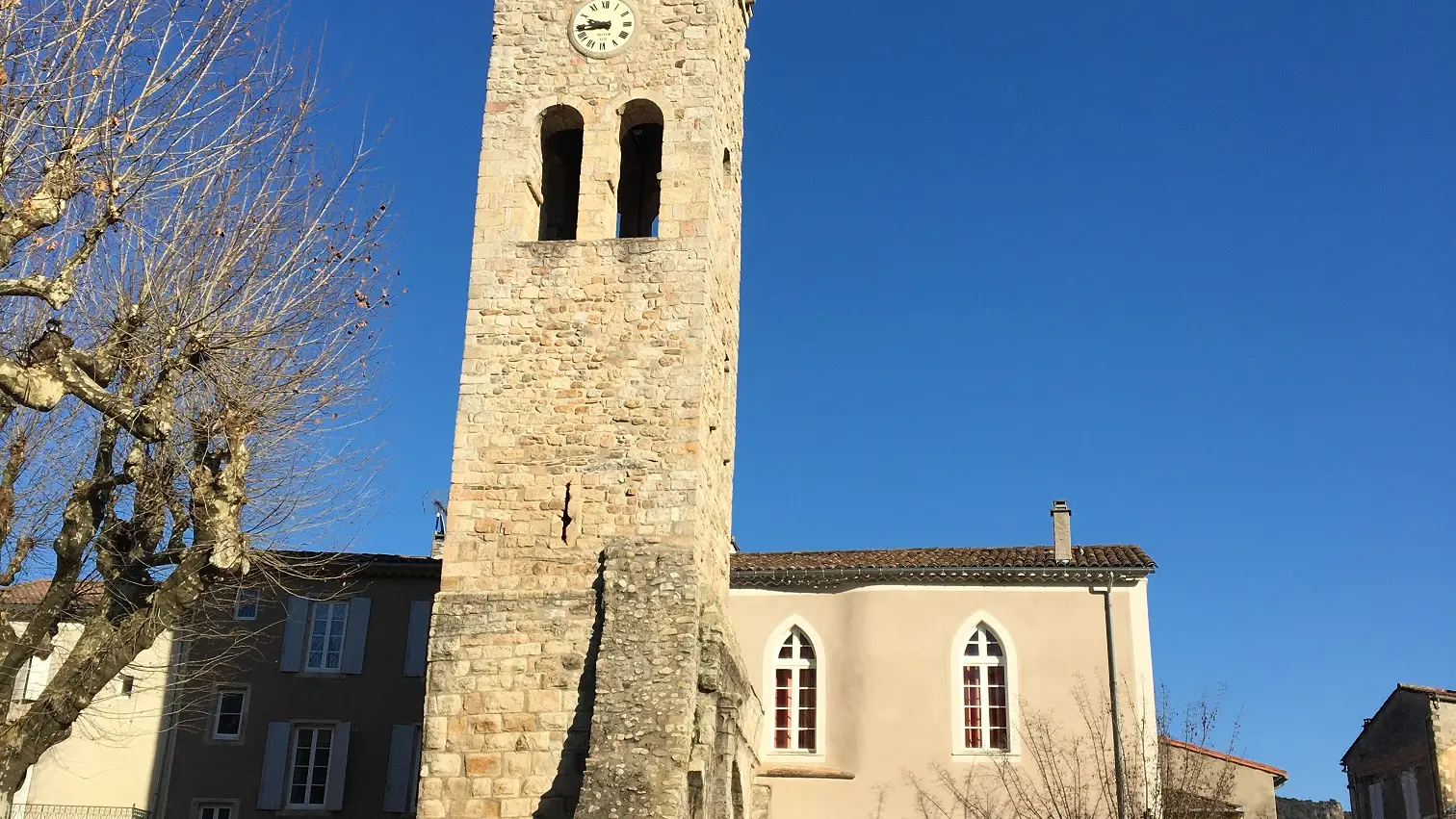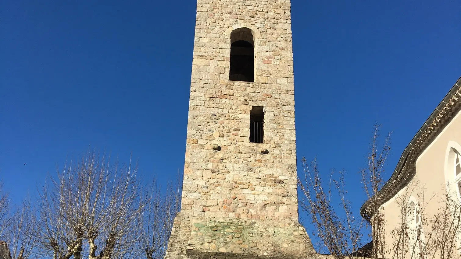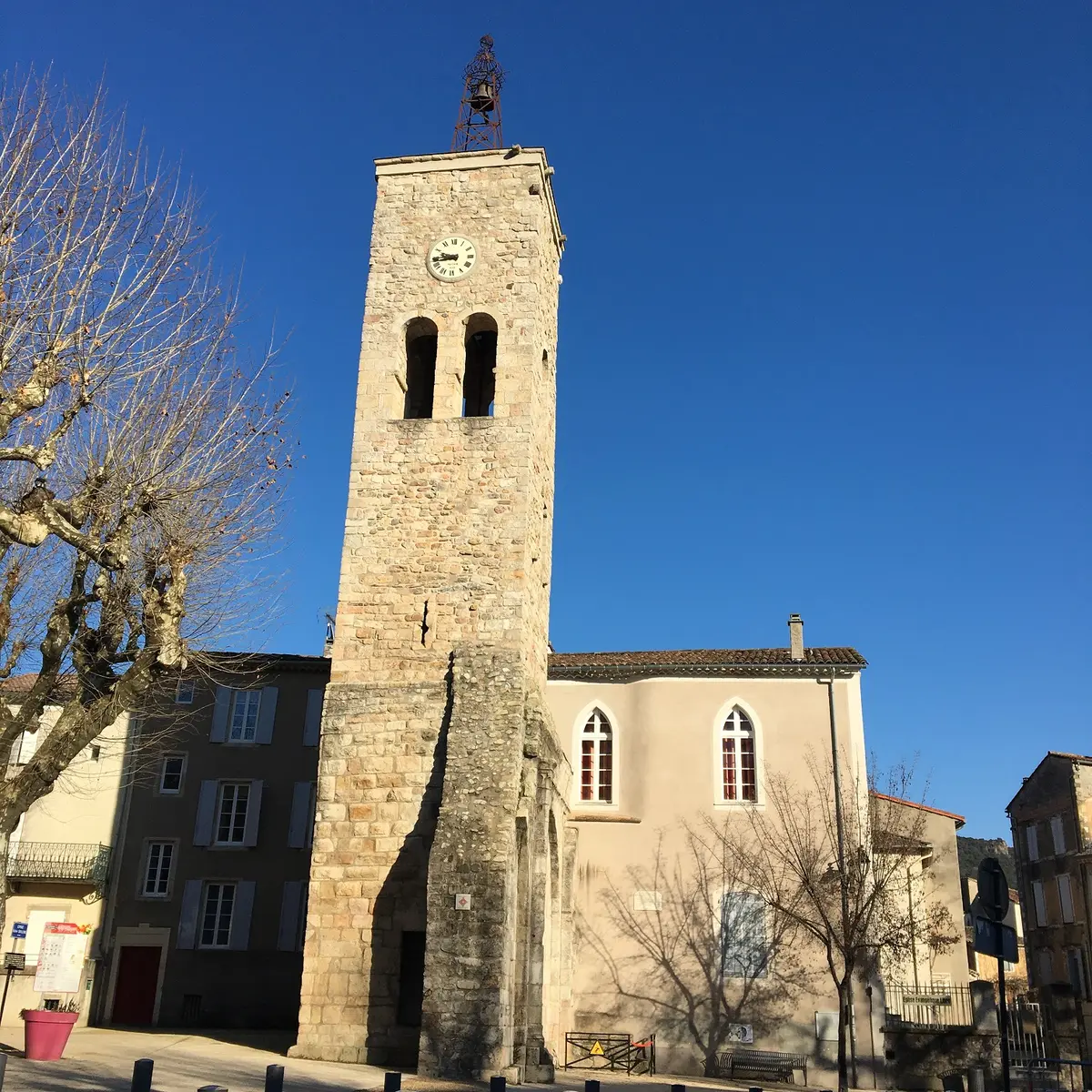 Cet ancien clocher constitue tout ce qui subsiste de l'église romane construite par les moines bénédictins de Saint Gilles au XIIe siècle.