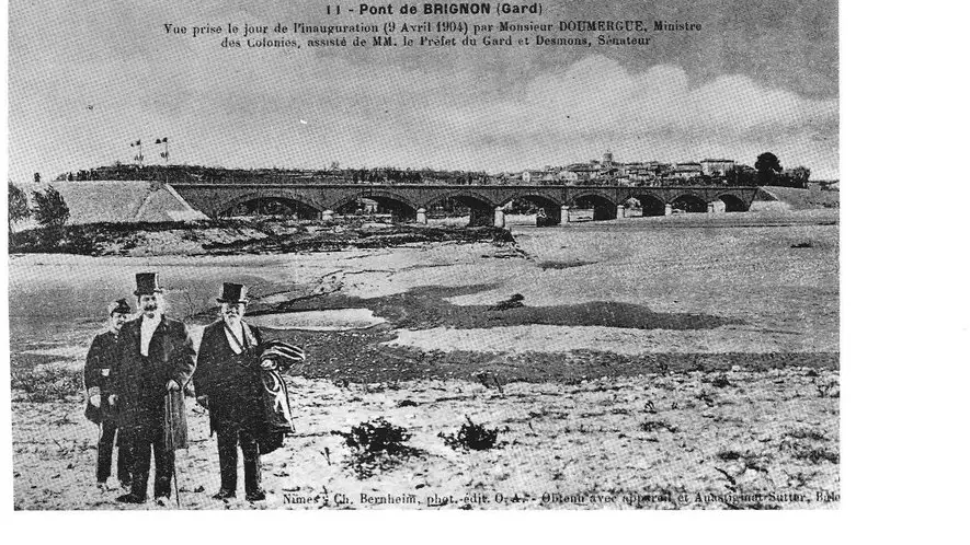 C'est le Pont Desmons, terminé en 1912 et inauguré en 1914. En 1932, il est décidé d'enlever le tablier du pont suspendu pour un passage plus facile de l'eau lors des grosses crues du Gardon. On y ajoute 3 arcades.